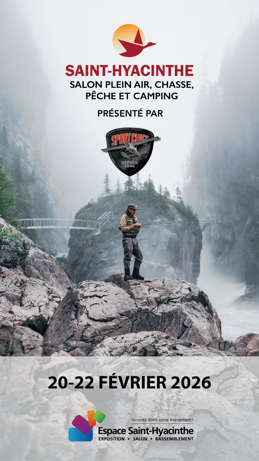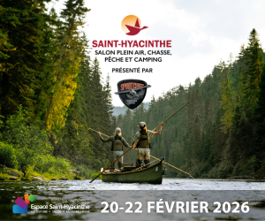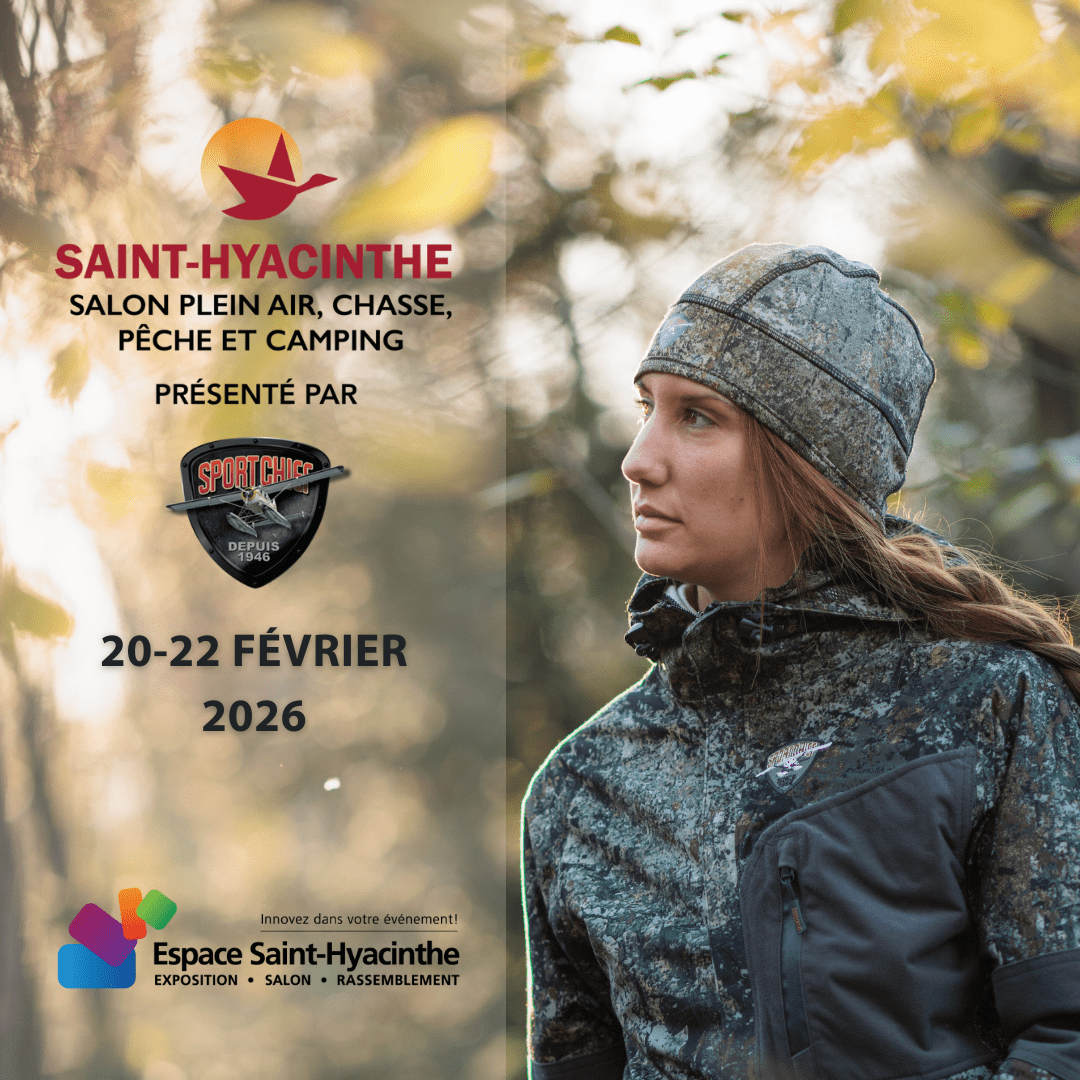 Le Salon plein air, chasse et pêche de Saint-Hyacinthe revient du 20 au 22 février 2026! Découvrez les derniers équipements et jasez avec des pros du domaine. Chasse, pêche ou nautisme — il y en a pour tous les goûts!