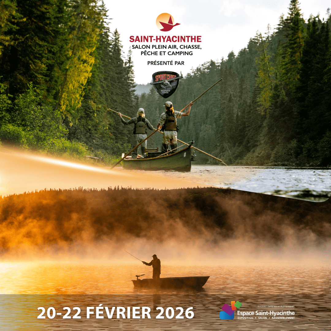 🚨 Nous serons au Salon plein air, chasse et pêche de Saint-Hyacinthe du 20 au 22 février 2026 à l'Espace Saint-Hyacinthe! Rejoignez des milliers d'amateurs de plein air pour trois jours de démonstrations captivantes, d’équipements de pointe et de conférences d'experts, dont Michel Therrien! #SalonpleinairSH #Salonchassepeche